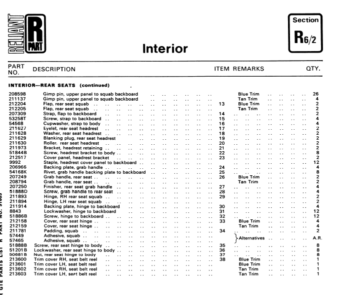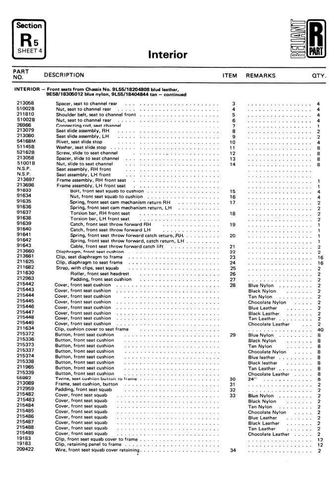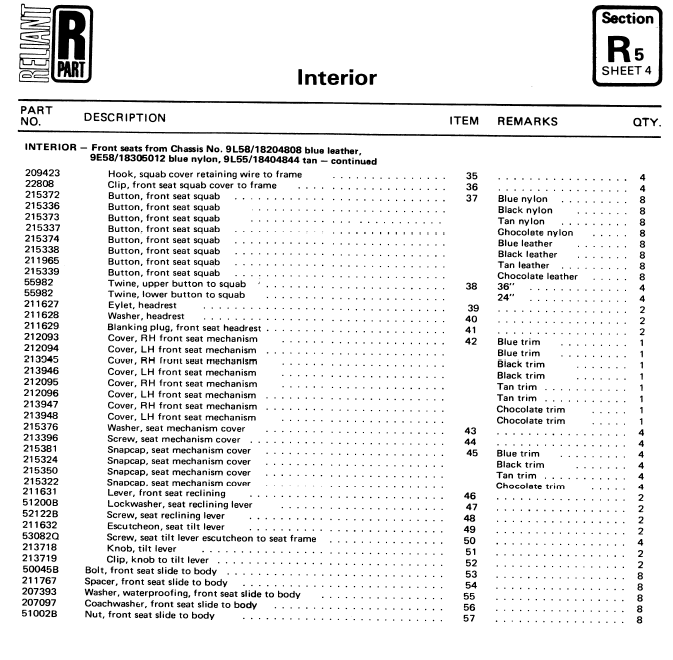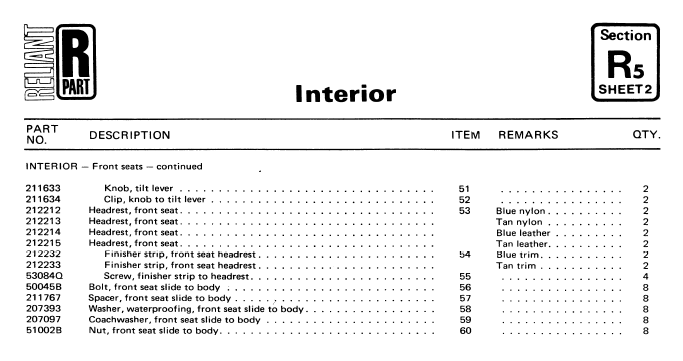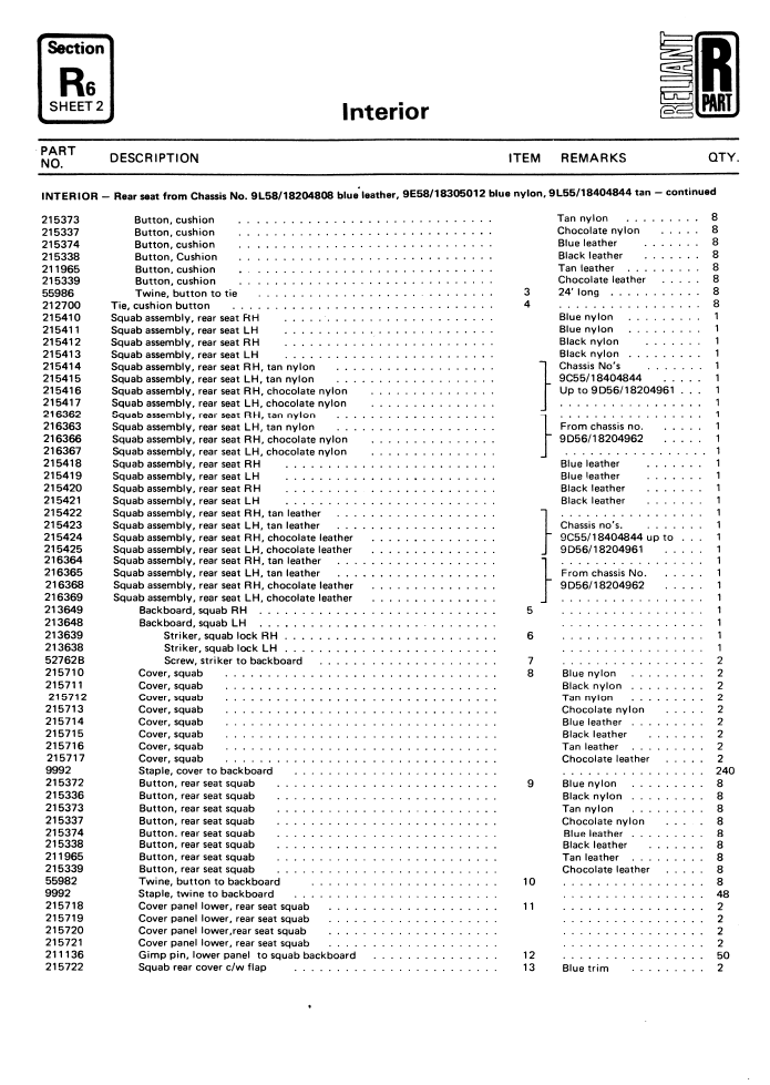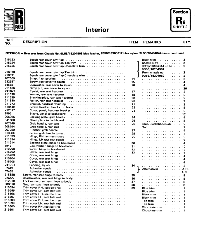 SE6/6A Interior Parts