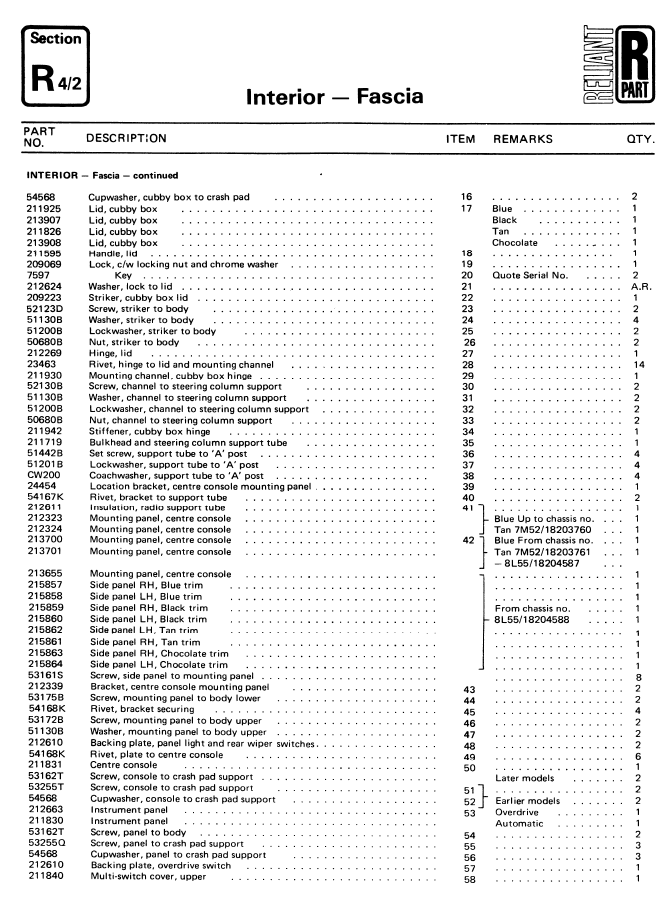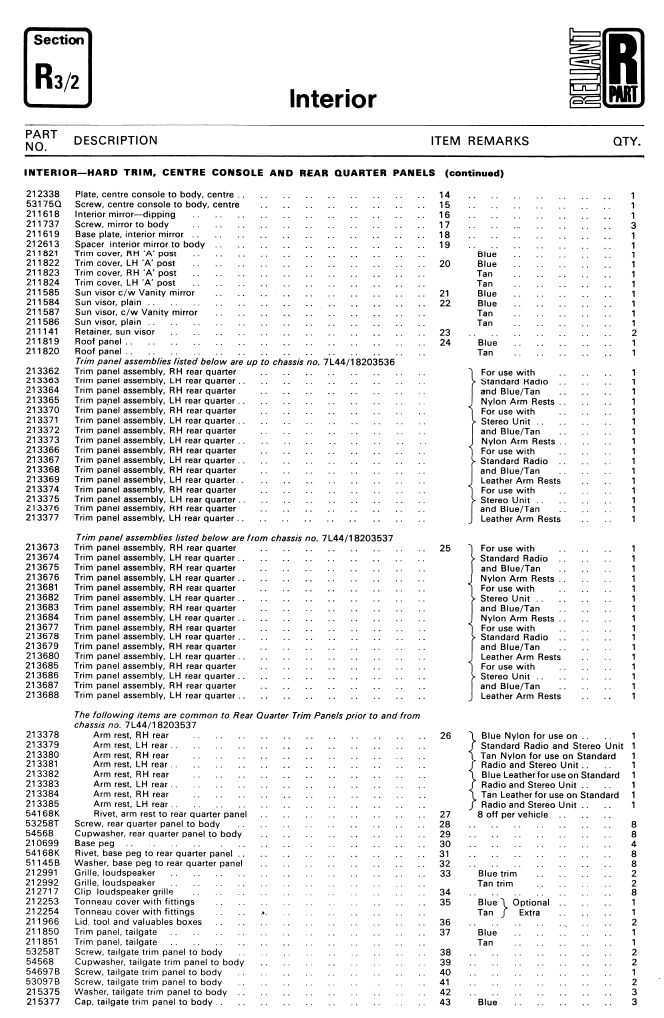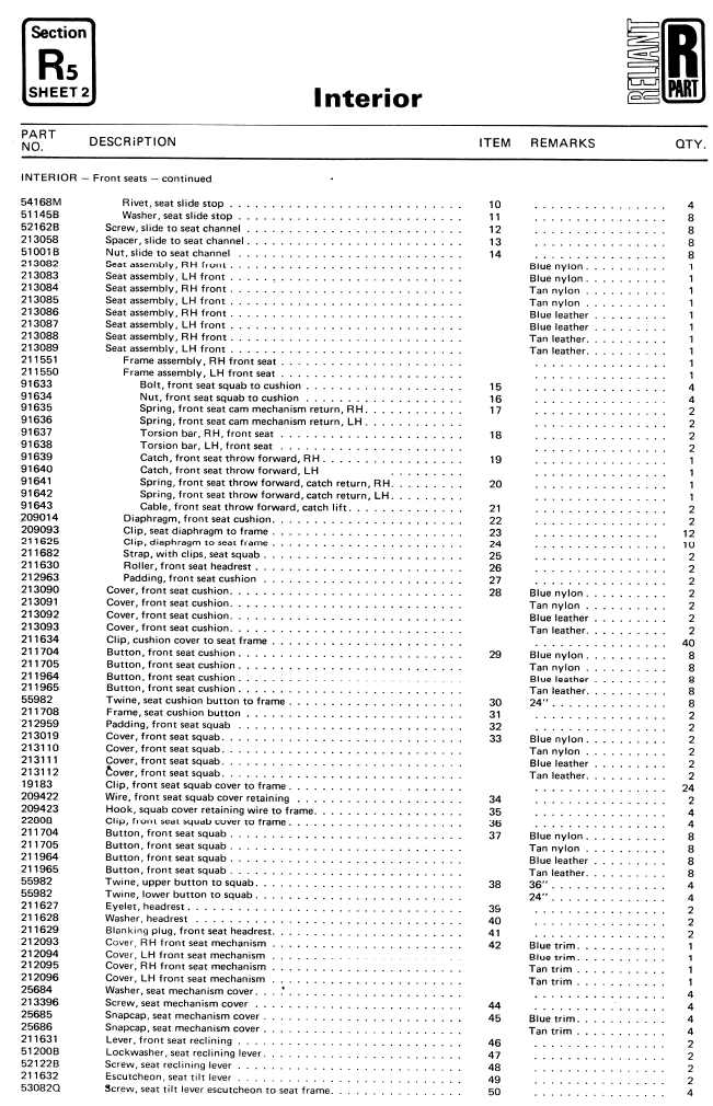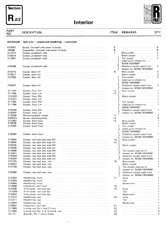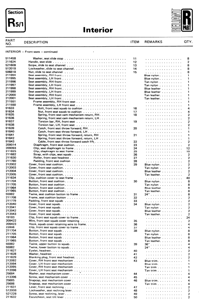SE6/6A Interior Parts
