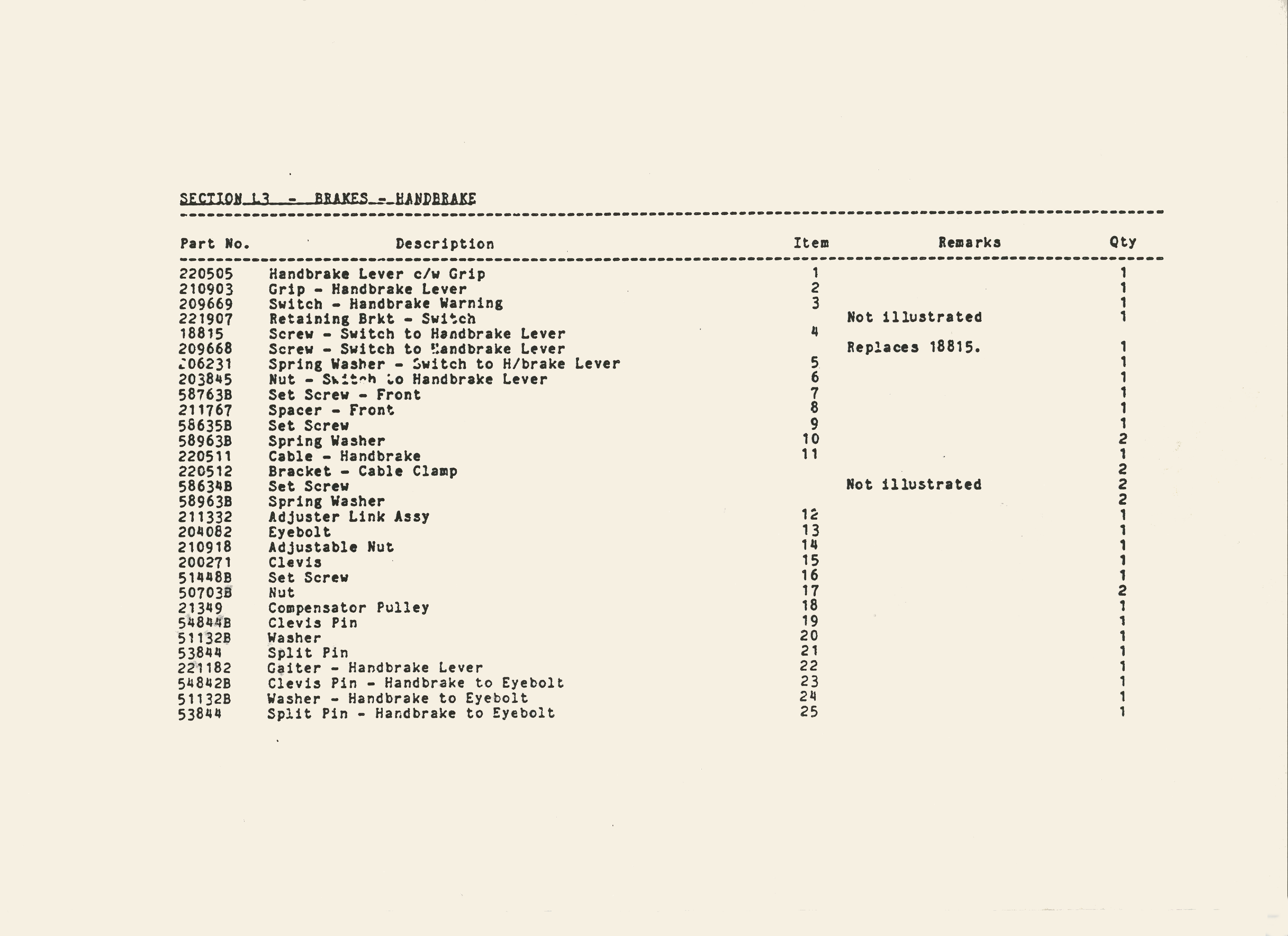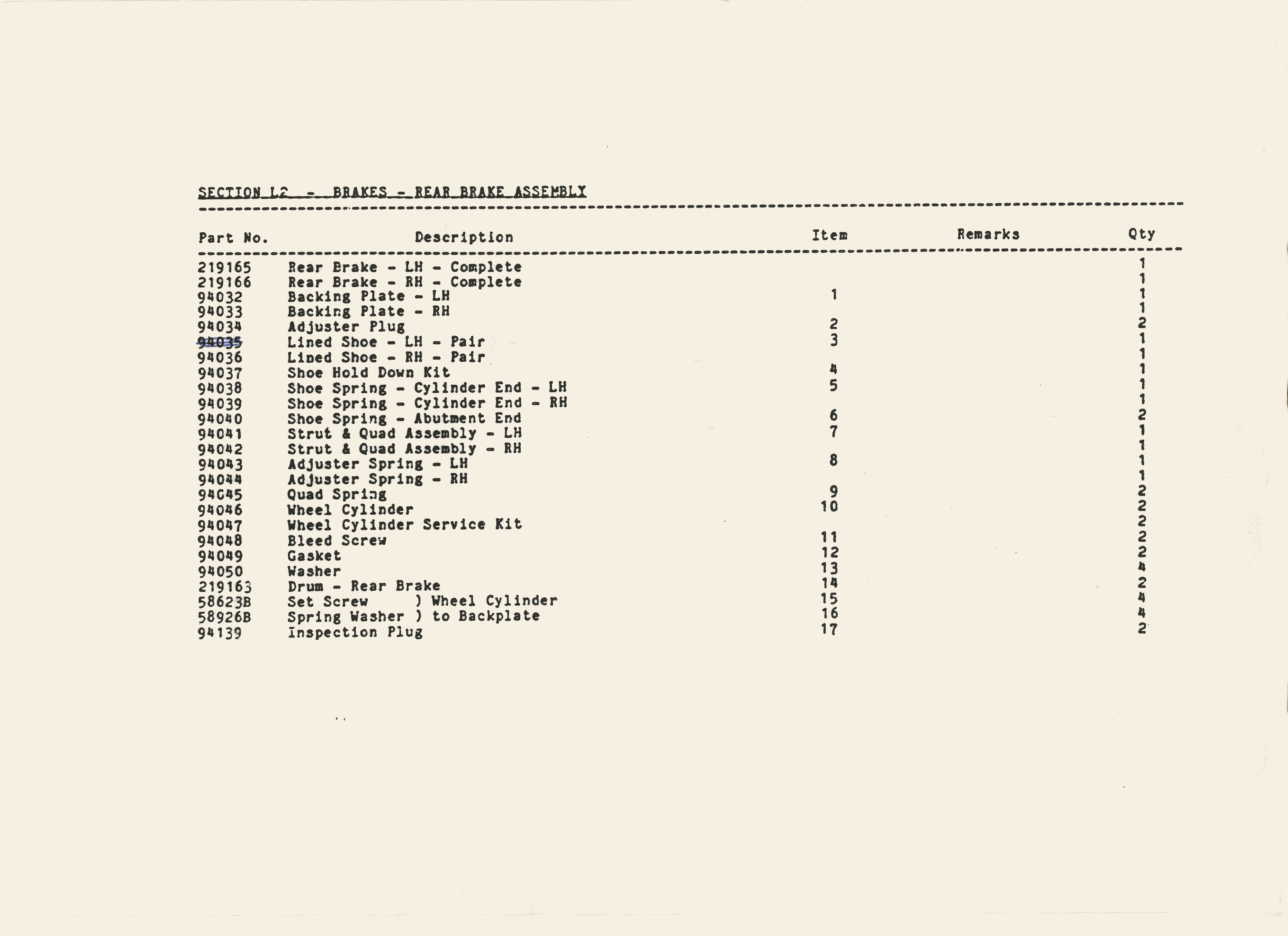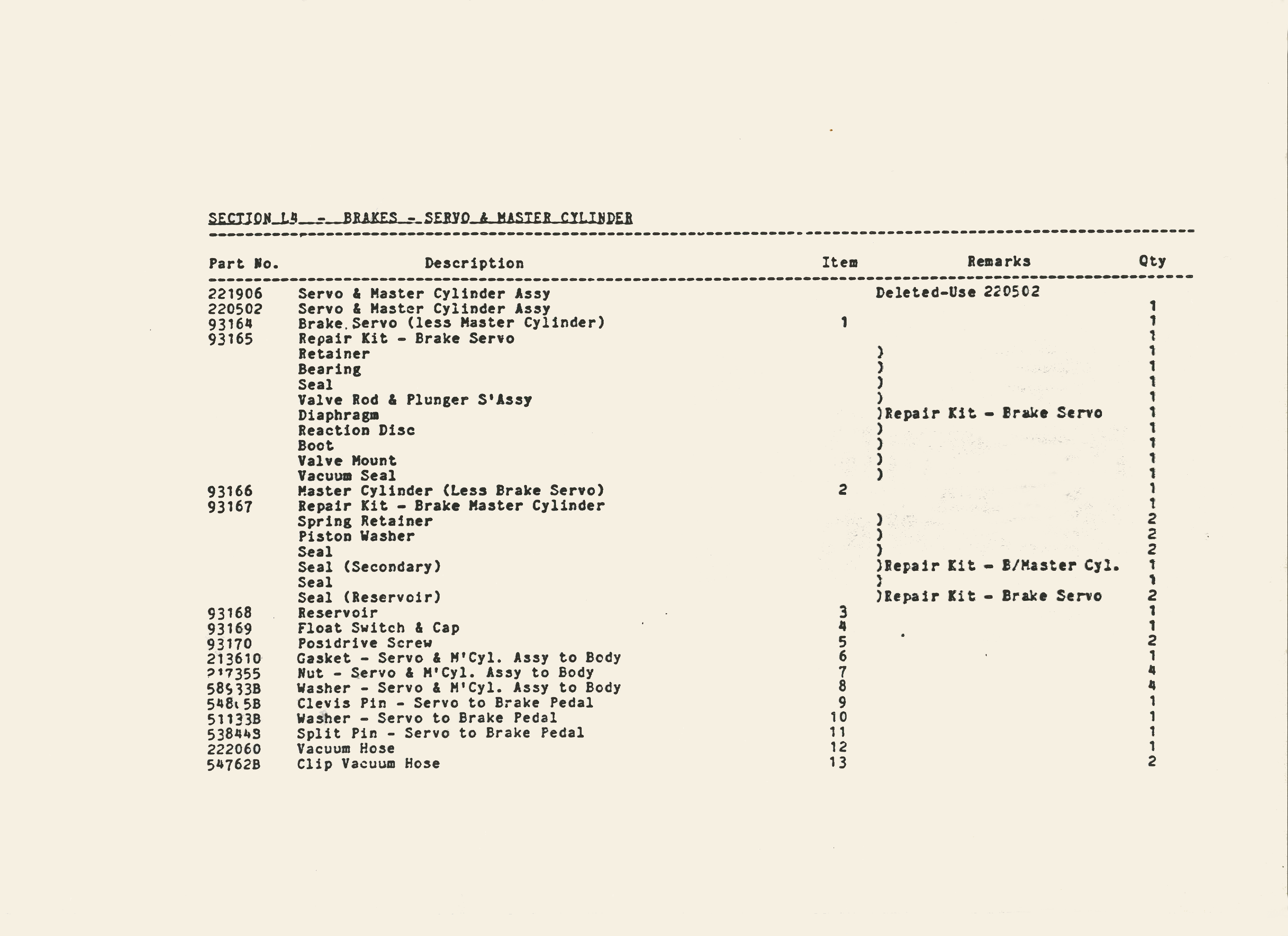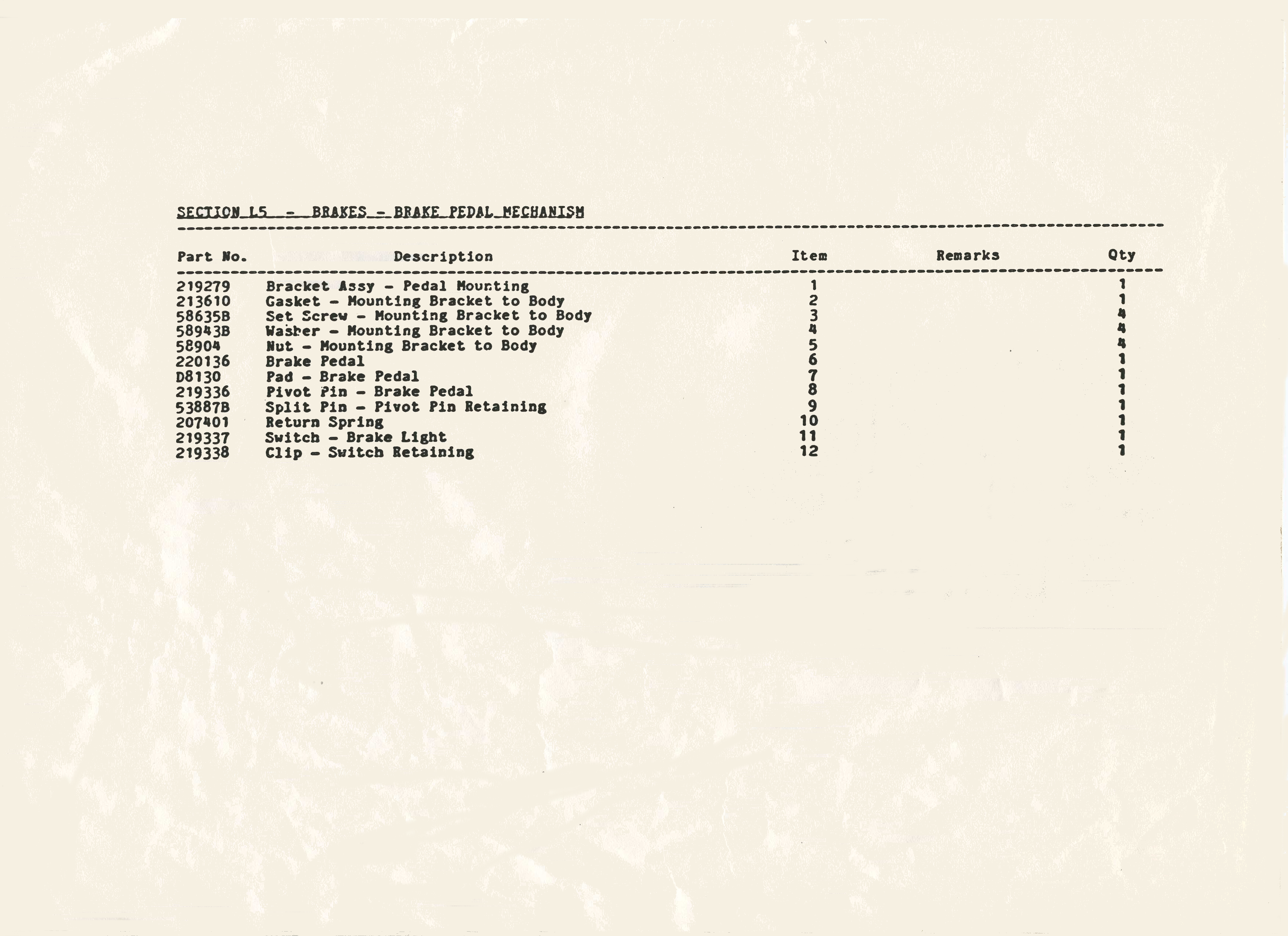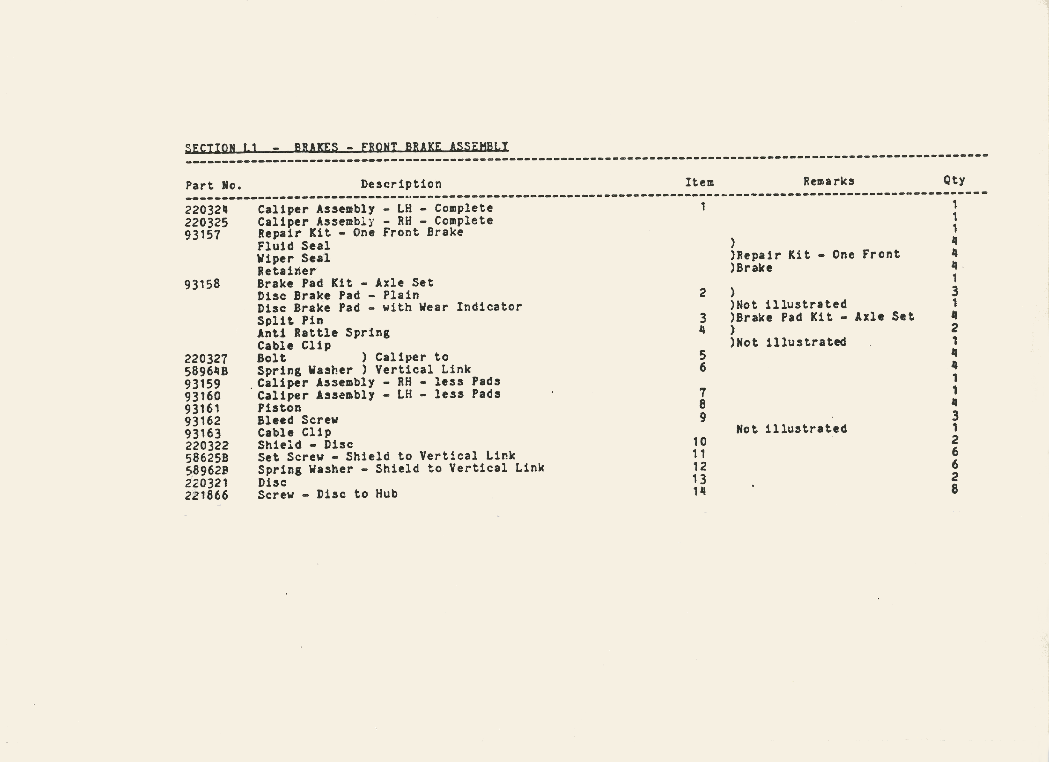 SS1 Sabre Brake Parts