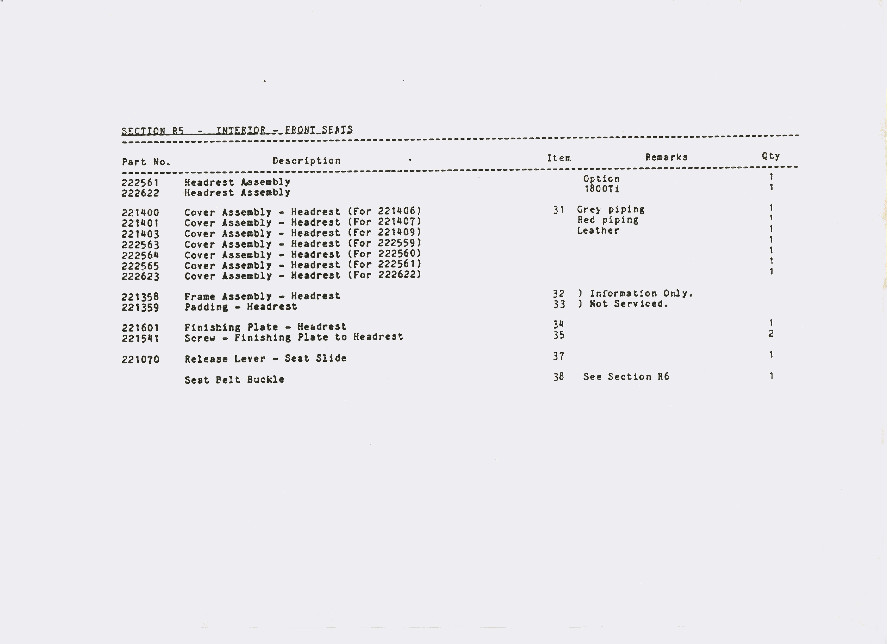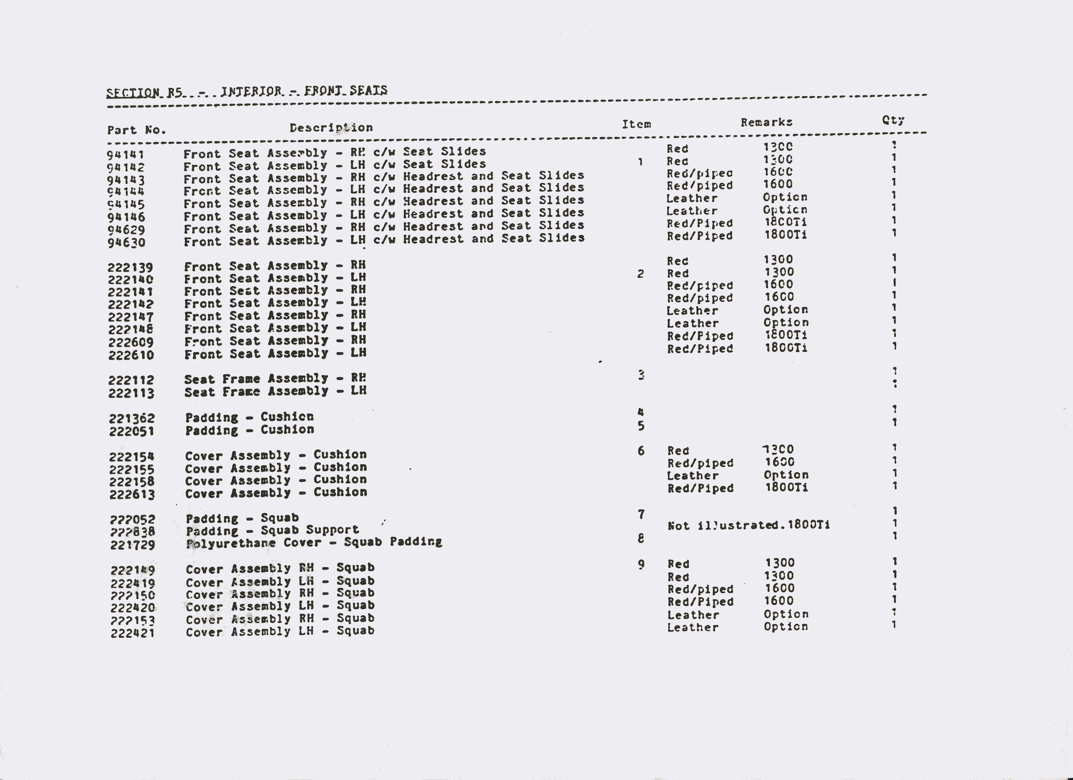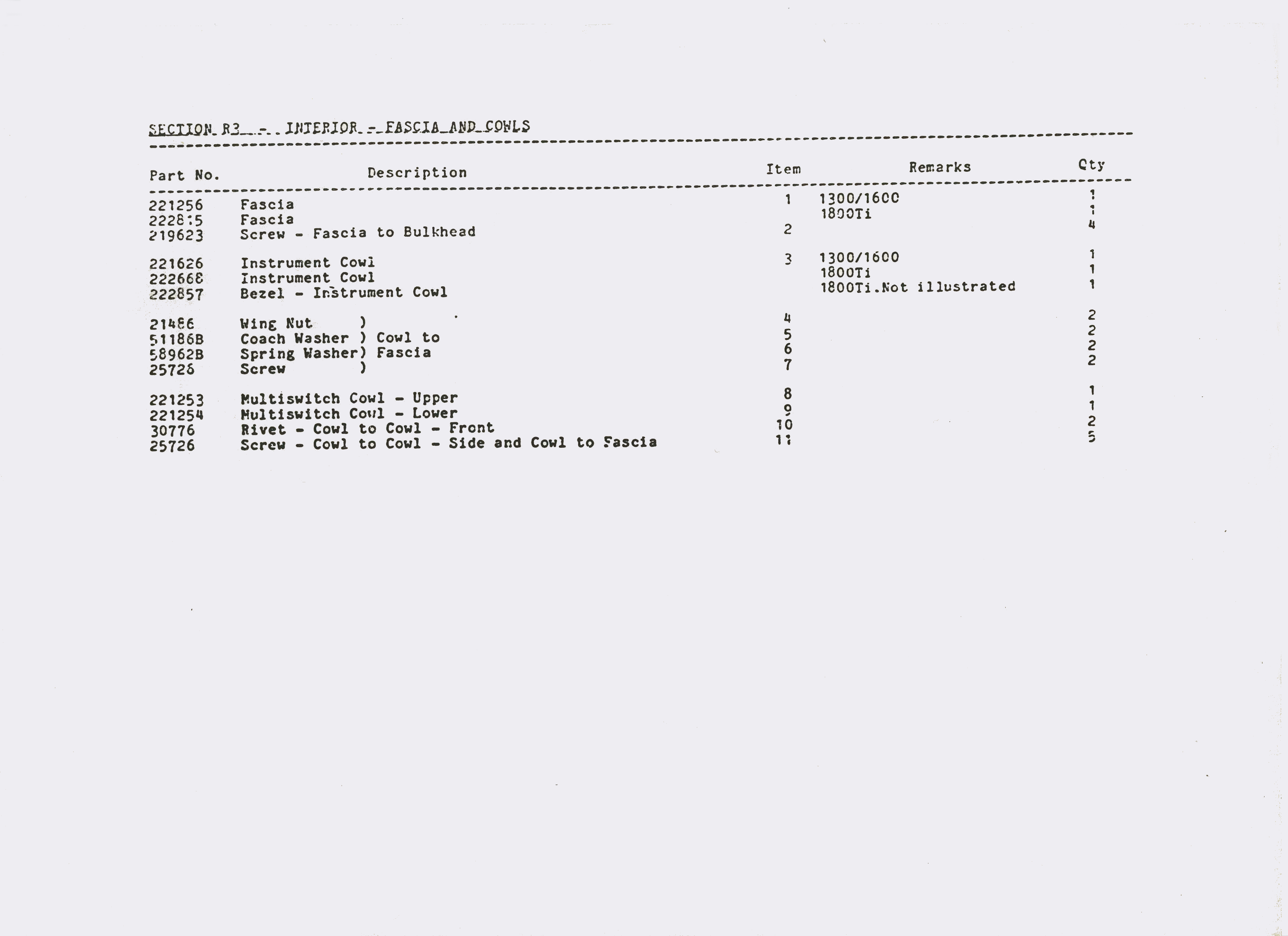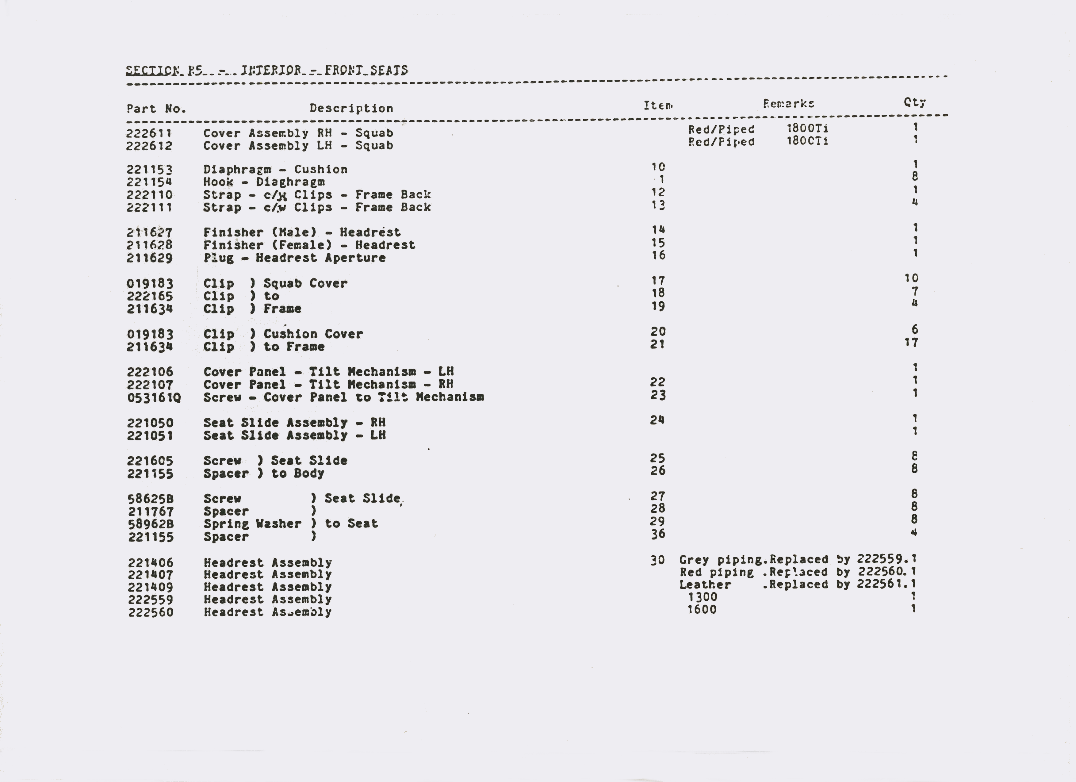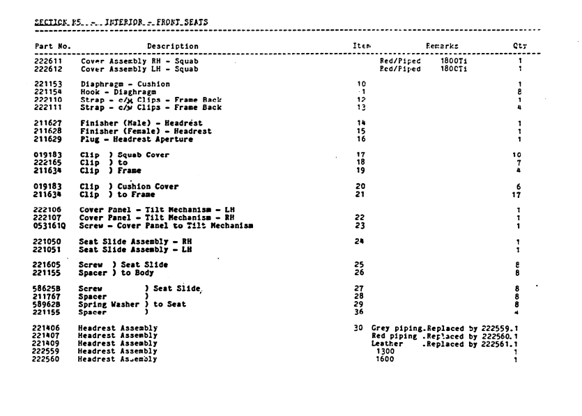 SS1 Sabre Interior Parts