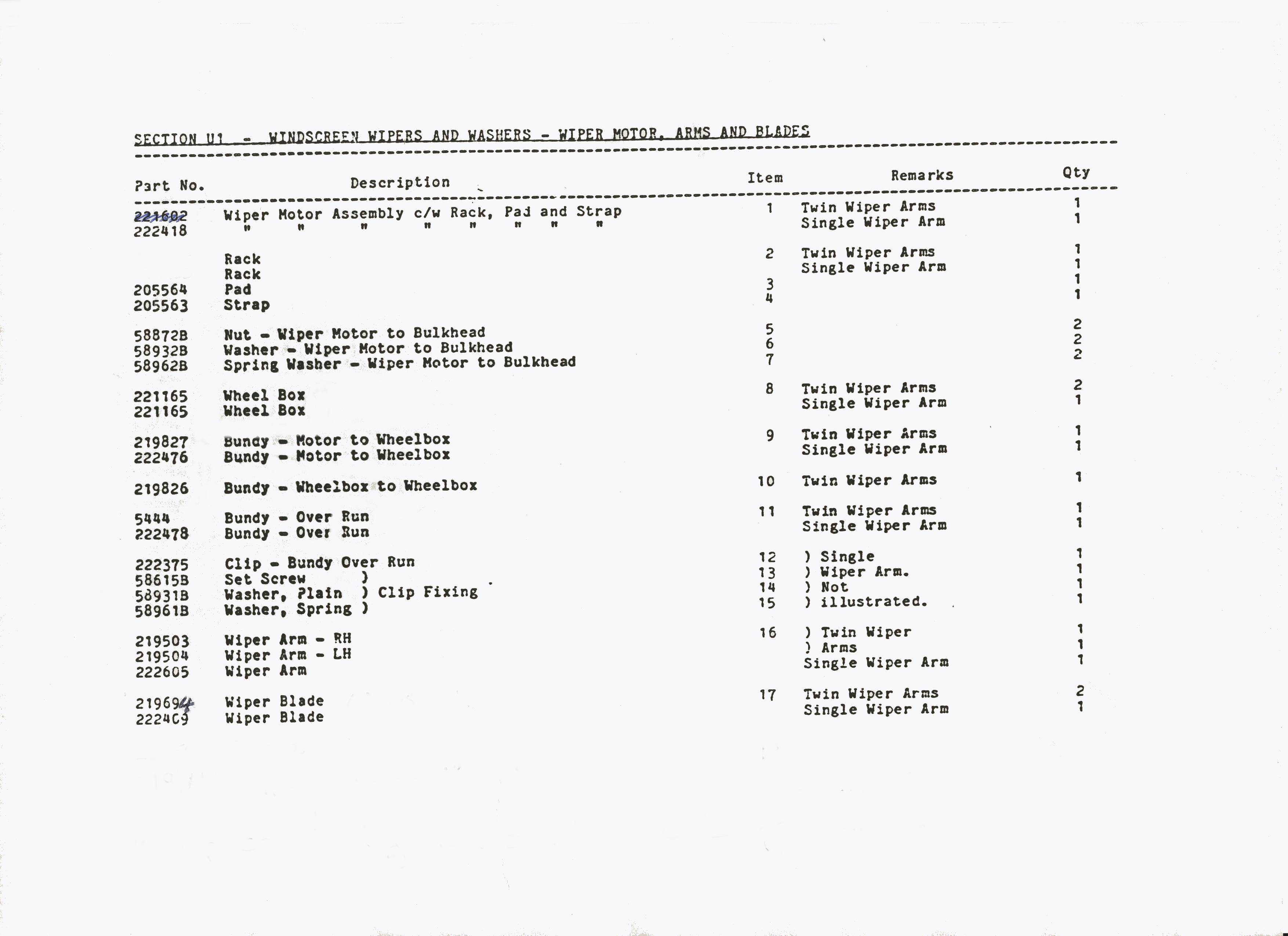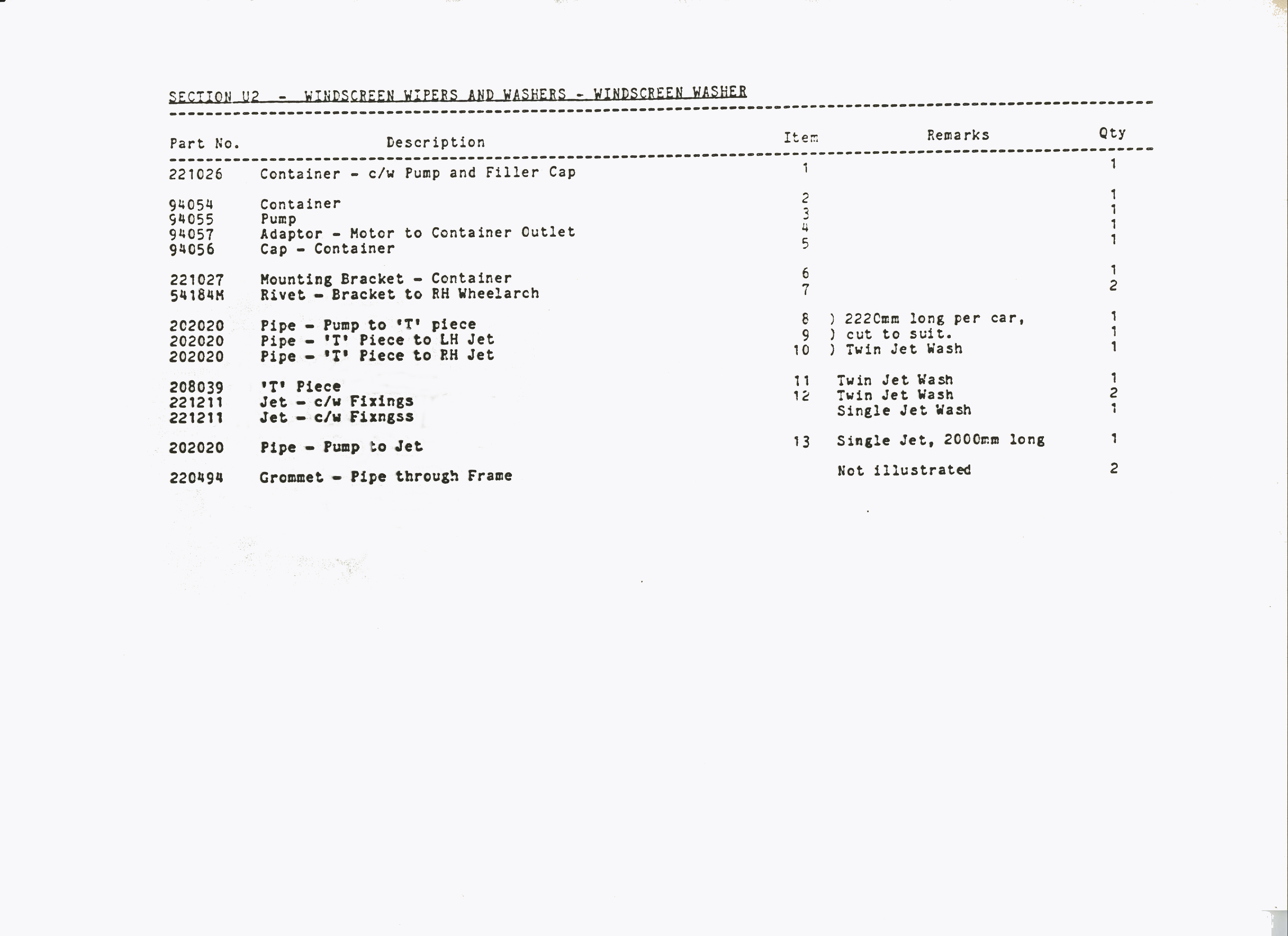 SS1 Sabre Washer/Wiper Parts